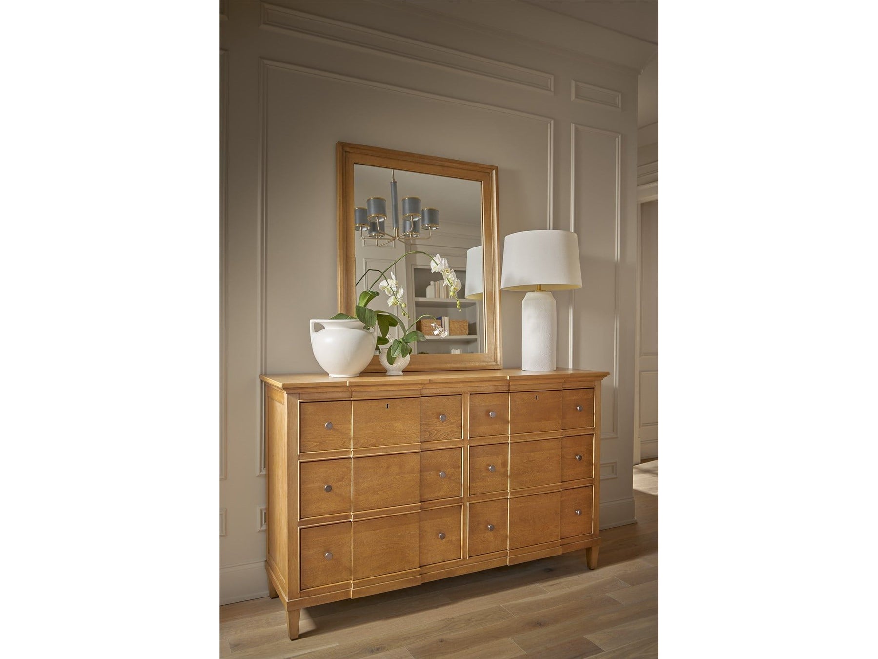 The stately Dresser offers ample storage in its six generous drawers, elegantly presented in the deep, warm finish. Enhanced by aged pewter hardware and smooth soft-close drawer guides, the piece includes a cedar-lined bottom row to protect your finest accouterments.
