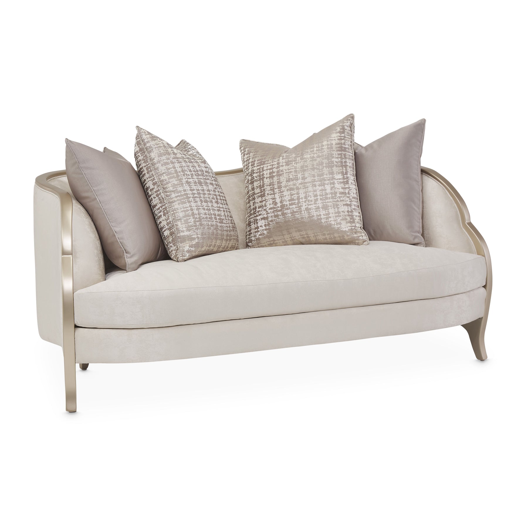 Design your home for romance. The Malibu Crest Loveseat features an exquisitely curved body, V-notch arms finished in Chardonnay, and a softly textured seat certain to brighten your home atmosphere instantly!