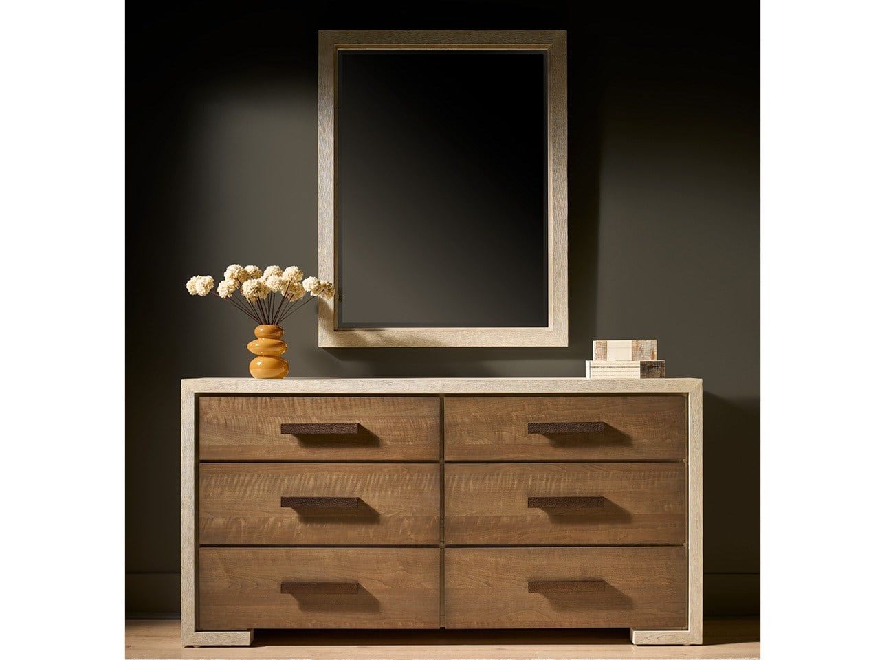 The figured, natural rhythm of the veneer creates a stunning, organic frame for the Mirror.